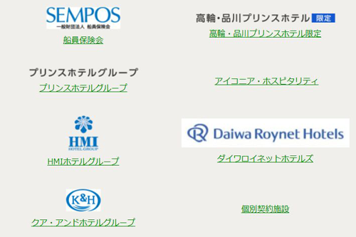 対象となるのは、「プリンスホテル優待プラン」「ダイワロイヤルホテルズ」「HMIホテルグループ」といった全国的にも人気の高いホテルチェーンです。
